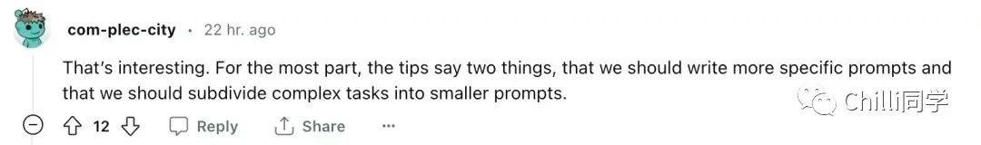 "真是太有意思了!总结来说,这些技巧的核心思想主要有两点。首先,我们需要提供更具体的细节提示,让模型有更充分的信息。其次,对于复杂的任务,我们可以将其拆分为一系列小任务来完成。"