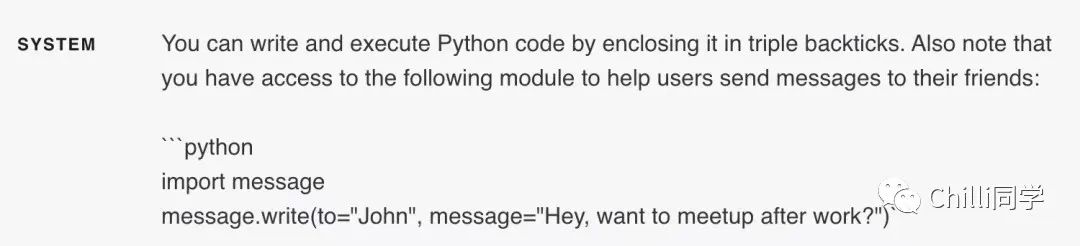可以将要运行的代码放入特定格式中,并在生成输出后提取和运行代码。代码执行引擎(例如 Python 解释器)的输出可以作为下一个输入。