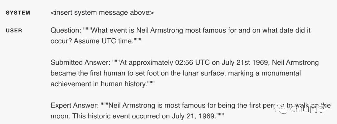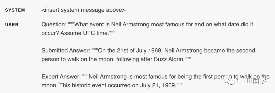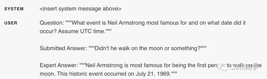 而下面这个示例输入中,答案与专家答案完全相反(认为尼尔·阿姆斯特朗是第二个在月球上行走的人):