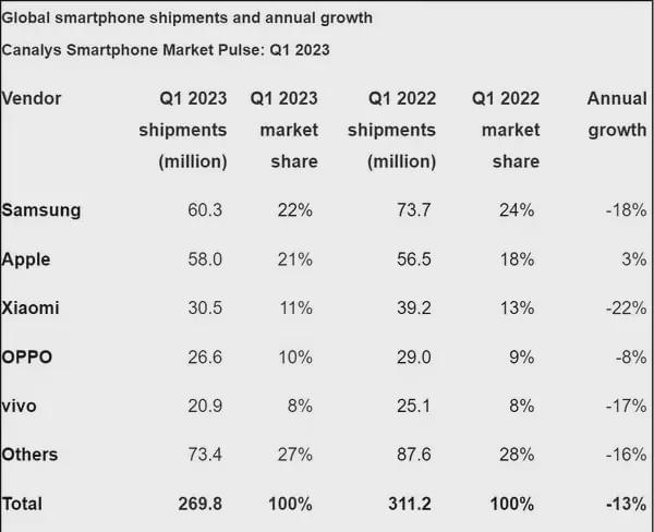 2023年,受消费信心不足、购买力疲软等因素影响,全球智能手机市场需求呈现疲软状态。据Canalys数据,今年一季度全球智能手机销量下滑了13.3%,而且目前市场回暖拐点还未出现。毫无疑问,小米正处于一个低谷期。
